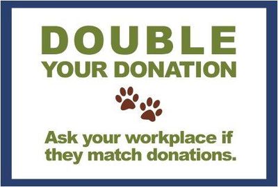 Many employers match gifts 100% or more, which makes your donation go even further to help us support pets and their parents in our community!